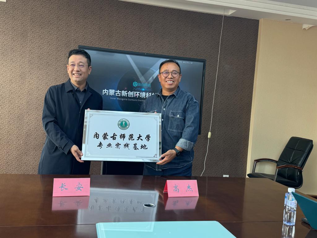 2024 年 10 月 9 日上午,公司与内蒙古新创环境科技有限公司于该公司会议室成功举办校企合作共建专业实践基地揭牌仪式。PA视讯官方网站科研处副处长周丹丹、pa视讯集团官网经理长安、PA视讯官方网站教务处实践教学科董振华、地理系主任阿荣、副系主任郭恩亮与斯琴朝克图,以及内蒙古新创环境科技有限公司总经理高杰、行政副总马晶晶、总工张玮、东联循环(子公司)总经理王林、美成生态(子公司)总经理范志勇、众元测试(子公司)总经理郝文强出席了此次揭牌仪式。
