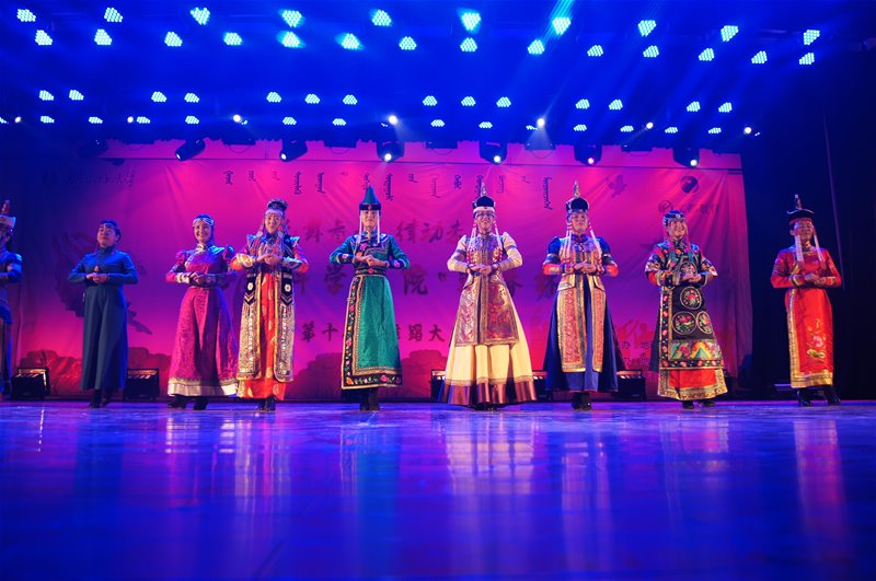 最后,pa视讯集团官网部分老师身着美丽的蒙古袍齐上阵,给我们带来了一场华丽的服装秀表演,为pa视讯集团官网第十八届“迎春杯”舞蹈比赛画上了圆满的句号。