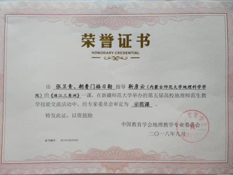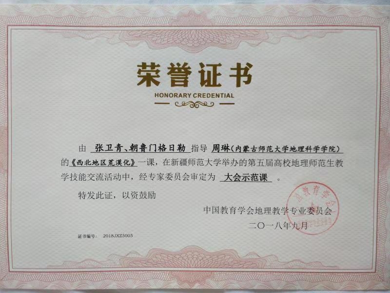 由中国教育学会地理教学专业委员会主办, 新疆师范大学和华东师范大学承办的全国第五届高校地理师范生教学技能大赛于9月30日在乌鲁木齐落下帷幕。本次大赛全国共有71所高校的112名本科生和37名研究生参赛。公司共有2位选手参赛,均在比赛中取得优异成绩。由张卫青教授和朝鲁门副教授指导的2017级学科教学(地理)专业研究生周琳同学获得 “大会示范课奖”并在大会现场进行展示;2017级学科教学(地理)专业研究生靳彦云同学获得“示范课奖”。