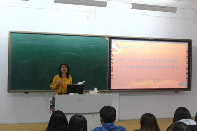 为加强新时期老员工思想政治教育,学习贯彻习总书记系列讲话,pa视讯集团官网员工党支部于2018年5月5日下午6:30在行知楼222教室组织开展了《学习贯彻习总书记系列讲话精神,加强新时期老员工思想政治教育》的主题讲座,主讲人为公司党总支副书记(主持工作)、副经理张裕凤教授。pa视讯集团官网第十期积极分子及预备党员,共147名同学参加了本次党课。