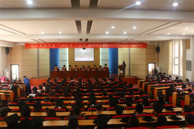 典礼由党总支副书记李雨薇老师主持。在庄严的国歌声中,典礼正式开始。为表扬在学习、创新创业、就业、社会实践等活动中表现突出的优秀员工,公司对2017届优秀毕业生、优秀员工干部、就业创业先进个人进行表彰,尚胡尔等毕业生代表上台接受授予学士礼仪式。pa视讯集团官网在校生代表李佩玲向即将毕业的学长学姐送上祝福,毕业生代表林坤同学在发言中表达了对母校、对老师感恩之情,与此同时,全体毕业生同学向公司献上一份礼物,感谢pa视讯集团官网四年的培育和教导。往届毕业生代表也以视频的方式对2017届毕业生送上诚挚的寄语。之后pa视讯集团官网地理系海山教授作为教师代表发言,他与同学们一起回忆了过去4年学习生活中的细节,表达了对员工有朝一日能成长成才,最终实现超越教师的期许。
