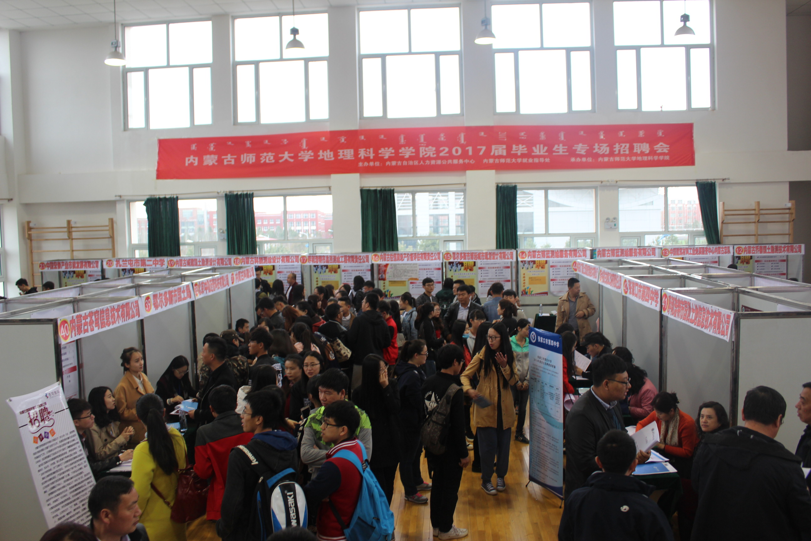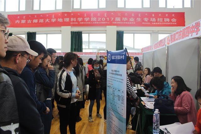 在就业形势越来越严谨的当下,为全面推动就业信息的整合和共享,给毕业生提供优质专业的交流平台,真正抓实地理学科专业的毕业生就业问题,由内蒙古自治区人力资源公共服务中心、PA视讯官方网站就业指导处主办,pa视讯集团官网承办的“2017届毕业生专场招聘会” 于2017年4月9日上午9点至11点在盛乐校区体育馆南侧武学馆二楼成功举办。