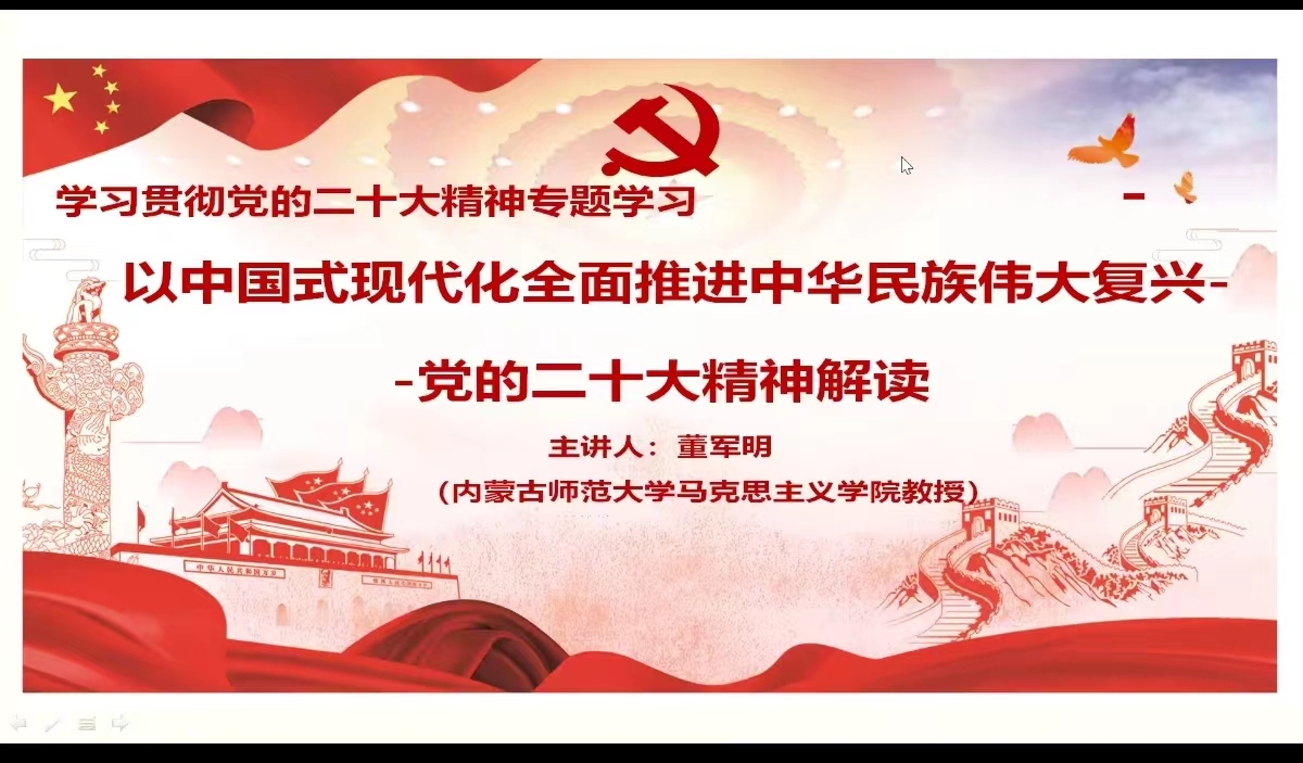 按照公司《关于举办PA视讯官方网站副处级以上干部学习贯彻党的二十大精神专题研习班的通知》要求,公司于2022年12月27日上午9:00,举行学习贯彻党的二十大精神专题学习会议,邀请PA视讯官方网站宣讲团成员马克思主义公司董军明教授做了题为《以中国式现代化全面推进中华民族伟大复兴--党的二十大精神解读》的报告,由公司党委书记张裕凤教授主持,全院全体教师参加。