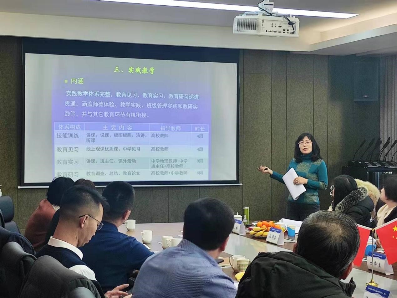 PA视讯官方网站与会领导为远道而来的中学领导和教师代表颁发了pa视讯集团官网教育实践指导教师聘书。教工第一党支部书记、地理科学系主任乌敦老师主持进行了2020版人才培养方案征求意见工作,张卫青教授作了题为《地理科学专业教育实践体系的构建》的报告。与会的各中学领导和老师们与PA视讯官方网站相关领导和老师热情交谈,为地理科学一流本科专业建设积极建言献策。萨楚拉副经理作总结发言。