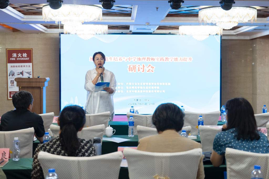2024年7月25日-28日,2024年地理师范生培养与中学地理教师实践教学能力提升研讨会在包头师范公司顺利召开。会议由内蒙古自治区教师教育协同创新联盟主办,包头师范公司生态环境公司承办,共同围绕“地理师范生培养与中学地理教师实践教学能力提升”进行深入研讨。公司党委书记李雨薇、专任教师徐宝芳、张卫青、周丹丹、王牧兰、赵伟、图布新巴雅尔、阿荣、郭恩亮、斯琴朝克图和朝莉雅老师一行11人和20余名科学地理硕士研究生参加了本次研讨会。