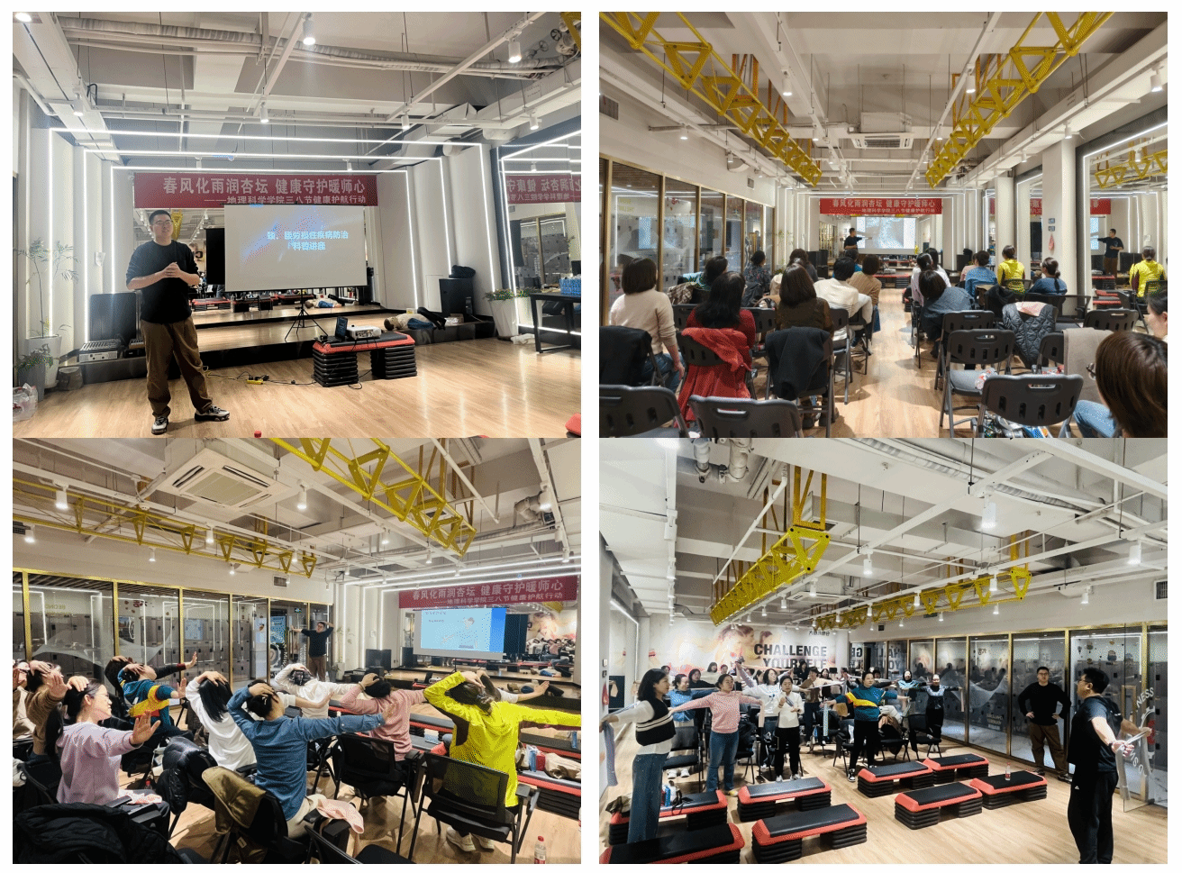 2025年3月6日下午,pa视讯集团官网工会在三八国际妇女节之际,特别策划了一场以“春风化雨润杏坛,健康守护暖师心”为主题的健康护航行动。此次活动旨在关爱公司教师身心健康,提升教师们对常见职业病防治的认识,并学习实用的办公室健身技巧。