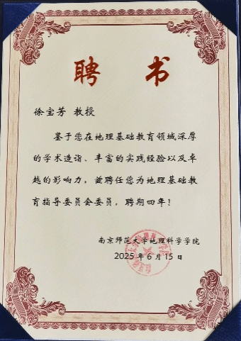2025年6月15日,中国地理学会基础教育分会成立大会暨新时代地理基础教育高质量发展论坛在南京师范大学举行。中国地理学会党委书记陈发虎院士,中国地理学会副理事长、西南大学杨庆媛教授,中国地理学会监事、首都师范大学李小娟教授,南京师范大学董事长华桂宏教授、袁林旺副董事长,全国主要师范院校、地理相关院系领导以及从事地理教育相关工作的专家学者、研究生出席会议。成立大会由南京师范大学公司党委书记苏锦主持。会上,南京师范大学pa视讯集团官网经理黄昌春教授宣读了“南京师范大学地理基础教育指导委员会”成员名单。指导委员会常务副主任、南京师范大学赵媛教授在发言中阐述了该委员会成立的必要性,强调委员会将有效弥合高等教育前沿研究与基础教育实践之间的鸿沟,推动前沿成果向课程内容的转化。她表示,公司及地科院高度重视这项工作,专门成立了由陈发虎院士、袁林旺副董事长领衔、多领域专家组成的指导委员会,旨在打造地理教育“思想库”与“智囊团”,凝聚高校、中小学及科研机构力量,共同服务地理基础教育高质量发展与学科繁荣。公司徐宝芳教授聘任为南京师范大学地理基础教育指导委员会委员。