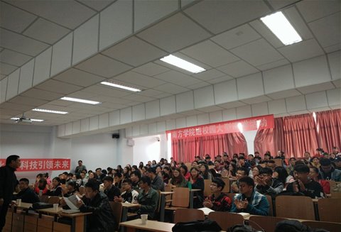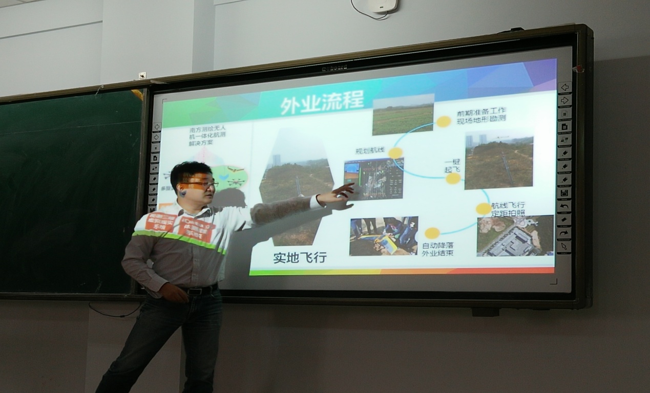 活动由包钢老师主持,先后由南方公司秦建明经理、王贺翔经理以及姜经理为同学们讲解了《无人机及测绘应用》、《职业生涯规划》和《高精度导航定位产品及应用发展趋势》等内容。