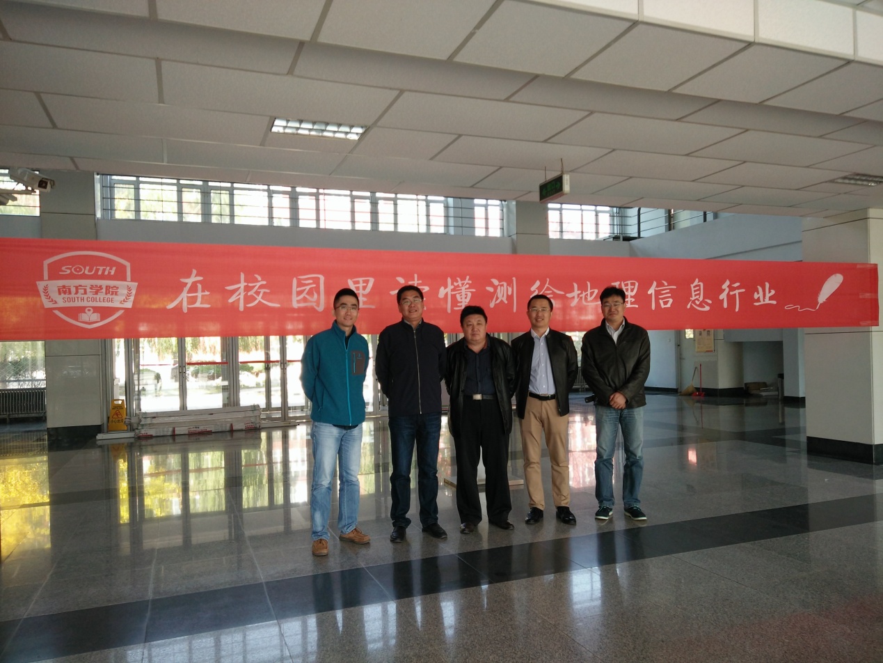 2016年10月10日南方公司进校园巡讲活动在行知楼207教室隆重举行,参加本次活动的有pa视讯集团官网经理包玉海教授、城市规划与测绘工程系副主任包钢老师、南方公司的各位领导以及pa视讯集团官网地理信息科学专业、测绘工程专业的部分员工。