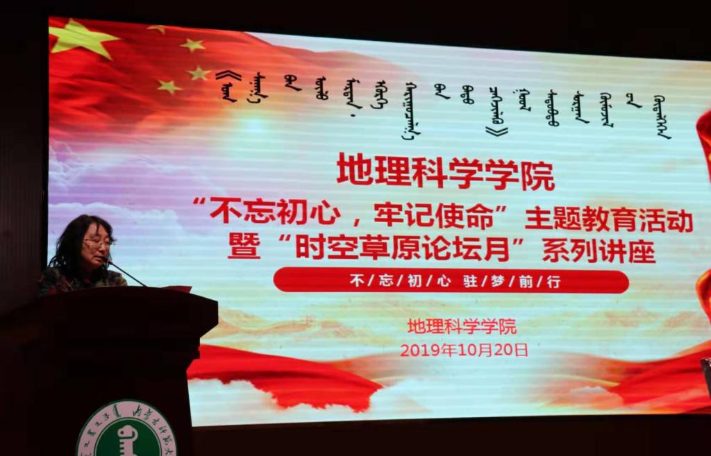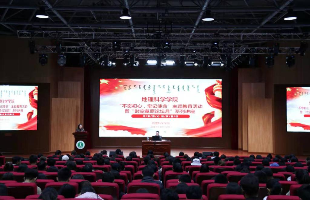 2019年10月20日上午,公司“不忘初心,牢记使命”主题教育活动暨“时空草原论坛”宣传月系列讲座在PA视讯官方网站盛乐校区图书馆二楼报告厅成功举行。会议由公司党委书记张裕凤教授主持,邀请公司优秀员工、东北师范大学pa视讯集团官网副教授郭蒙(系公司2002级土地资源管理专业优秀员工)做题为《基于遥感数据的林火CO2排放量估算,基于用电量数据的农村宅基地闲置研究》的专题讲座。公司研究生、本科生共计四百余人参加了本次讲座。